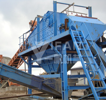 石料通过给料机均匀地被送到颚式破碎机进行粗破,粗破后的物料由胶带输送机送入到制砂机进行进一步破碎,细碎后的物料被输送到振动筛进行筛分,达到成品粒度要求的物料被送入洗砂机清洗,清洗后由成品输送带输出即为成品;未达到成品粒度要求的物料从振动筛返回制砂机重新加工,形成闭路多次循环。成品粒度可按用户的需求进行组合和分级。如果选用干法生产工艺,可配备粗细粉分离机和除尘设备。